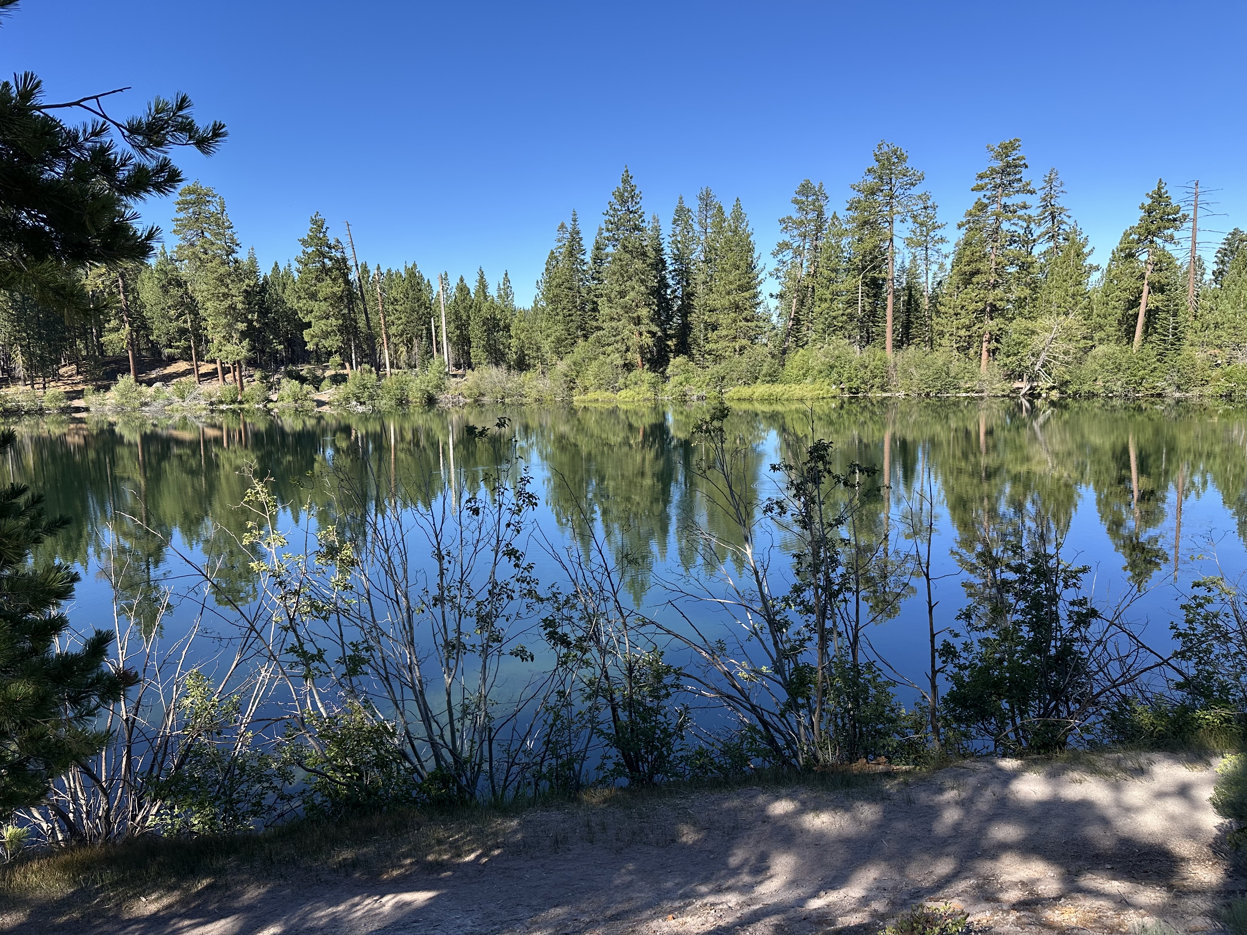 Just after the northern entrance, there is Manzanita Lake.>