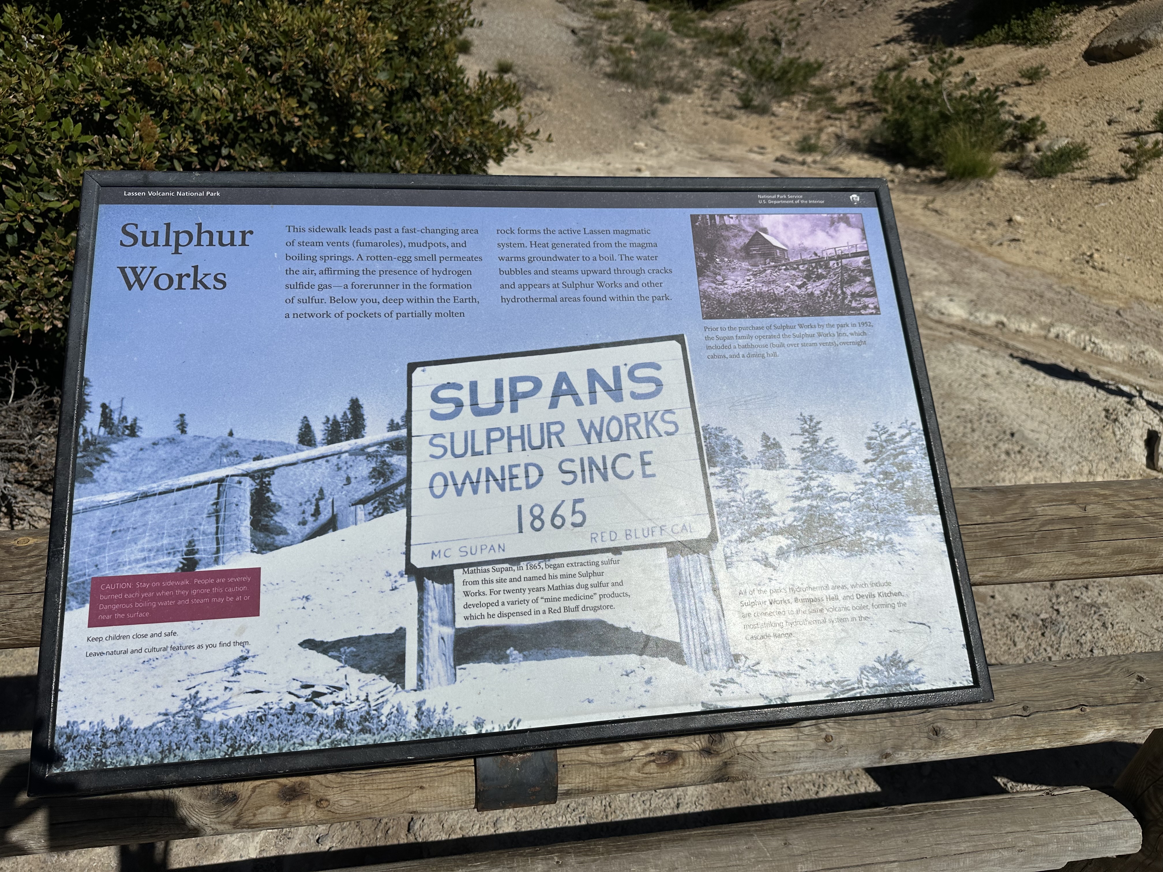 We walked up to one of the hot spots called Sulphur Works. There was a distinct aroma