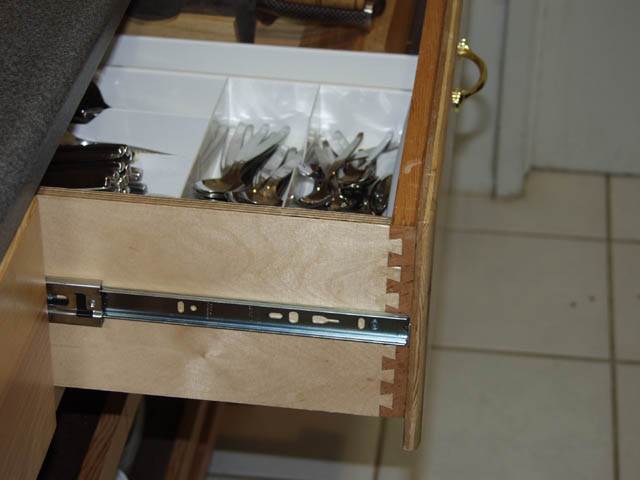 The drawers have nice dovetail joints and full extension hardward with a 100 pound capacity.